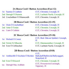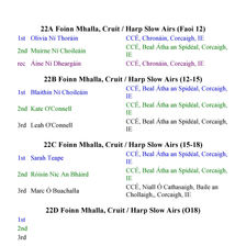 Congratulations to Ballincollig Comhaltas for hosting an excellent Fleadh Cheoil Chorcaí 2025 this weekend. All competition venues in Coláiste Choilm were superb and all the competitions ran off smoothly. Results of the weekend's competition are available below. All 1st place, 2nd place and 3rd place (recommended) now go through to represent Cork at Fleadh Cheoil na Mumhan in Cork City in July.